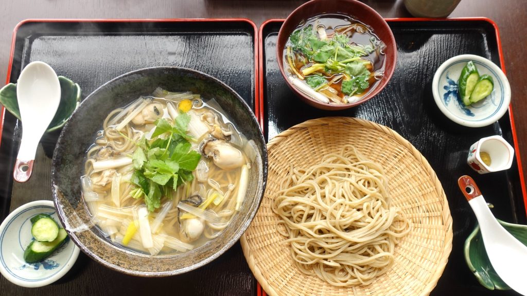 鶏と舞茸のせいろ蕎麦&牡蠣蕎麦 會津 おにやんま【会津若松市】季節限定メニューでランチを楽しむ(あいづ くらし)