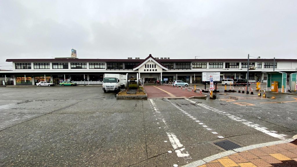 2020年12月の会津若松駅の写真。写真右側が掲題の駐車場です。ゲート、発券機、精算機(写真から切れてます)がありました。(もう少し最近の写真があればよかったのですが、見つかりませんでした) 飲食・観光・会津ぶらぶら「あいづ くらし」です。 福島県 ...