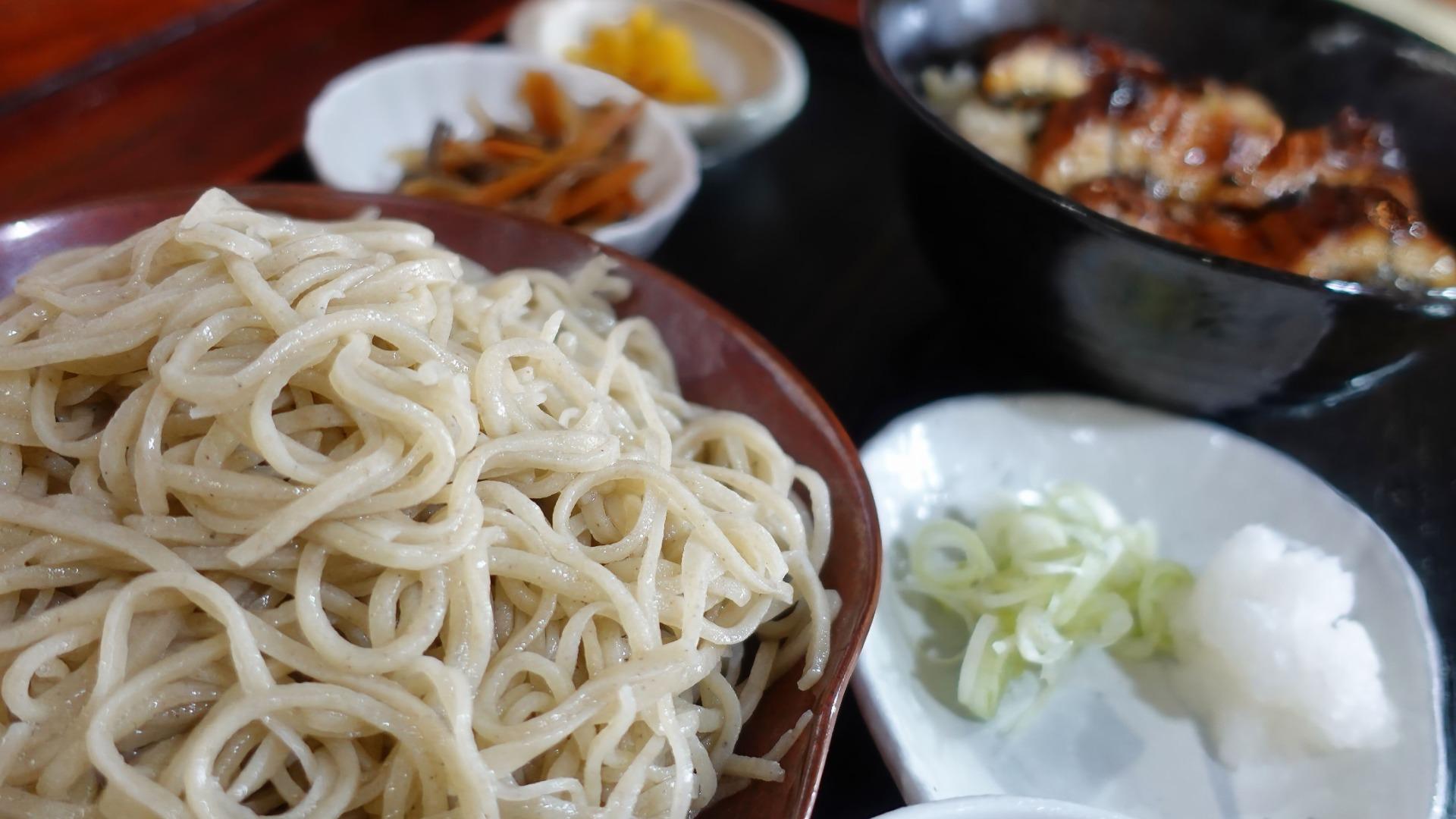 「手打ち蕎麦」の大書看板。蕎麦も美味しいのですが蕎麦屋じゃありません。でも一部では「蕎麦屋」と案内されている情報もあります。コスパも良くていつも何を頼むか悩む。今日は悩まなくて良かった、手打ち蕎麦・うな丼セットがあって良かった。