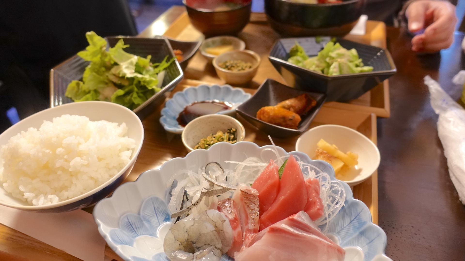この日の小鉢は3皿3品。先述の通り、日によって変わりそうです。どれも丁寧な味わい。「鮮魚の御造り定食」は、1,300円。大満足なランチとなりました。