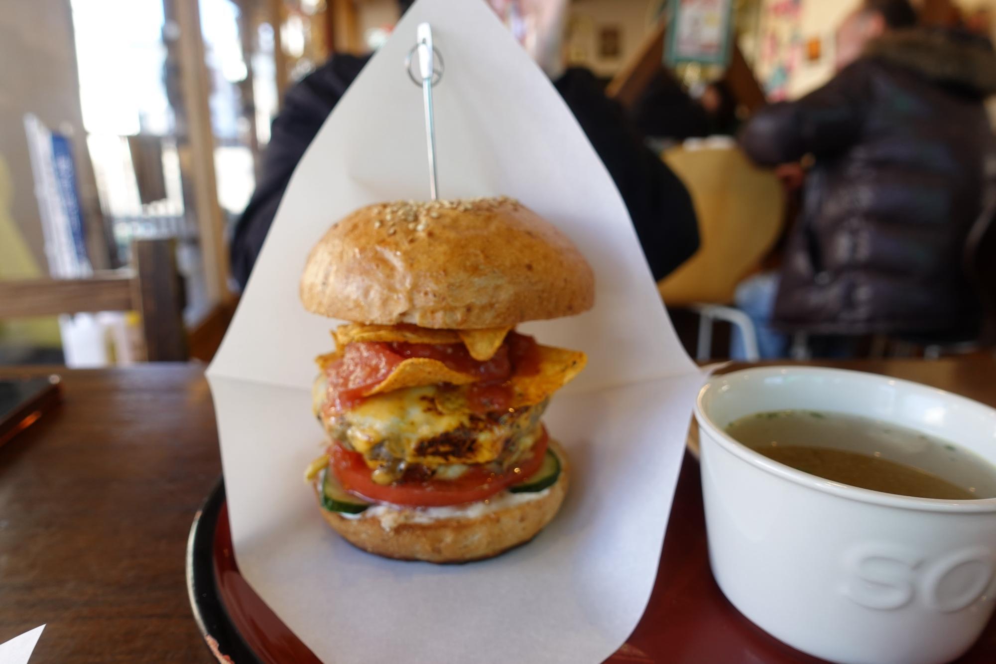 ラッキースマイル ボリュームに笑う 食べ方不明のビッグハンバーガー 七日町通り