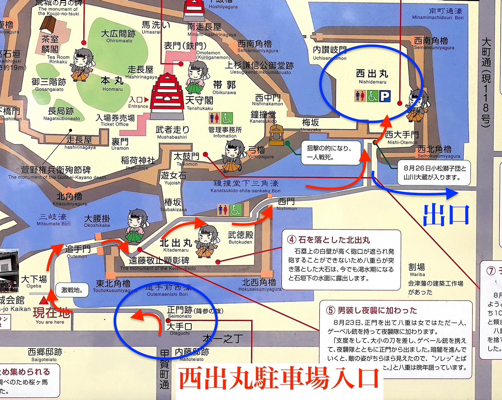 鶴ヶ城(若松城)の天守閣に一番近い駐車場【会津若松市】西出丸駐車場(有料)は地図だけで行くのは難しい