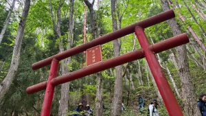 いや、結構歩きました。写真は「通行止め」。この先が本来の山城跡地になるのですが、崩れていて危険な状態になっている様子。「ヒメシャガ群生地」とあるように、辺りにはヒメシャガが咲いています。