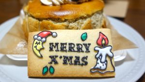 紅茶とりんごのベイクドチーズケーキは、選べるクリスマスプレートアイシングクッキー1枚つき。ちなみに、様々なデザインのアイシングクッキーが用意されていました。(インスタで見ただけです)12月24日の日中は仕事で、受け取りが遅い時間になってしまい、訪店時は「その他のアイシングクッキー」は売れ切れてました。