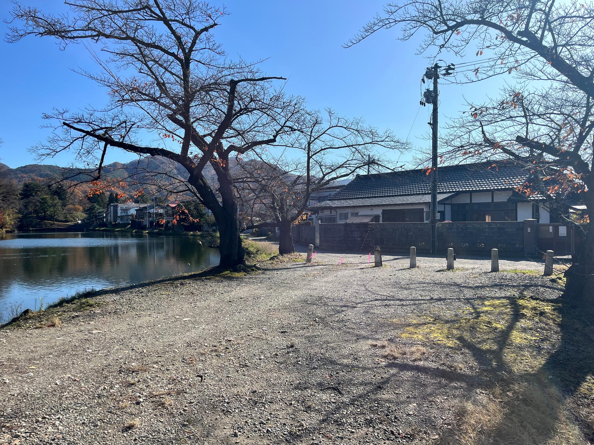 すれ違い不可、Uターン不可、車でここまできたことがありますが、穂都璃(ほとり)の駐車場がいっぱいでバックして帰りました。写真右奥が駐車スペースになっています。