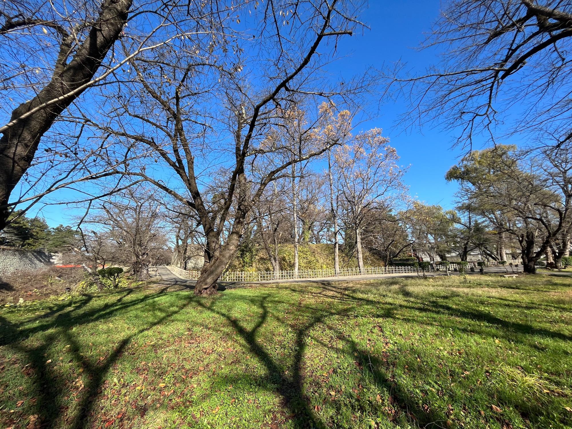 坂を登ると、桜の木のある広場です。名前を調べましたがよくわかりません。昔は、ここでもよくお花見の宴会が行われてました。本丸とかは場所取りが大変でしたが、この辺は穴場でした。