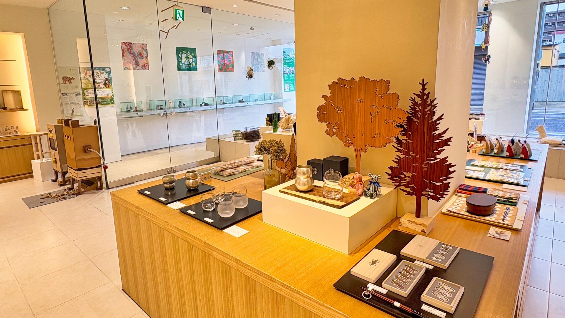 スペース アルテマイスターに入って最初の空間が「ショップ」。次の間が「茶の間」。「空間」がきちんとコーディネートされて気持ちいい。「冬の贈りもの2024-25」の商品も並びます。