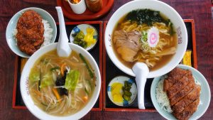 「味噌ラーメン」推しの人がいたり、「トンカツ」推しの人がいたり、昔からファンの多い店。雑誌や取材もあって、綾瀬はるかさんも来店された写真もあります。国道121号線から入る道は狭いのですが、最近(今年?)、国道沿いに駐車場が用意されたので、そこに駐車して歩いていくと便利です。