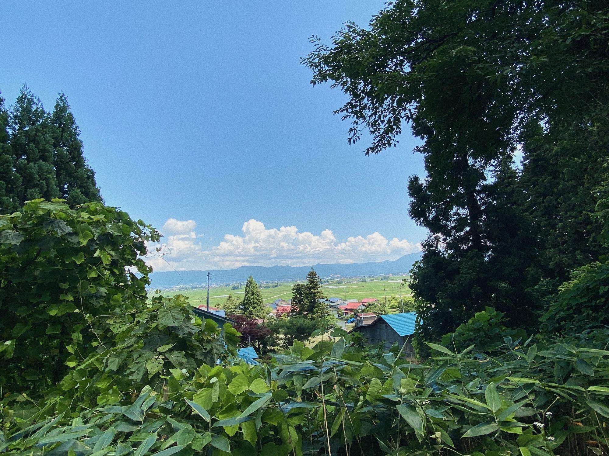 三重の塔の上から俯瞰すると、もっとよく見えると思いますが、身長が足りません。方角からすると、伊佐須美神社の方だと思います。