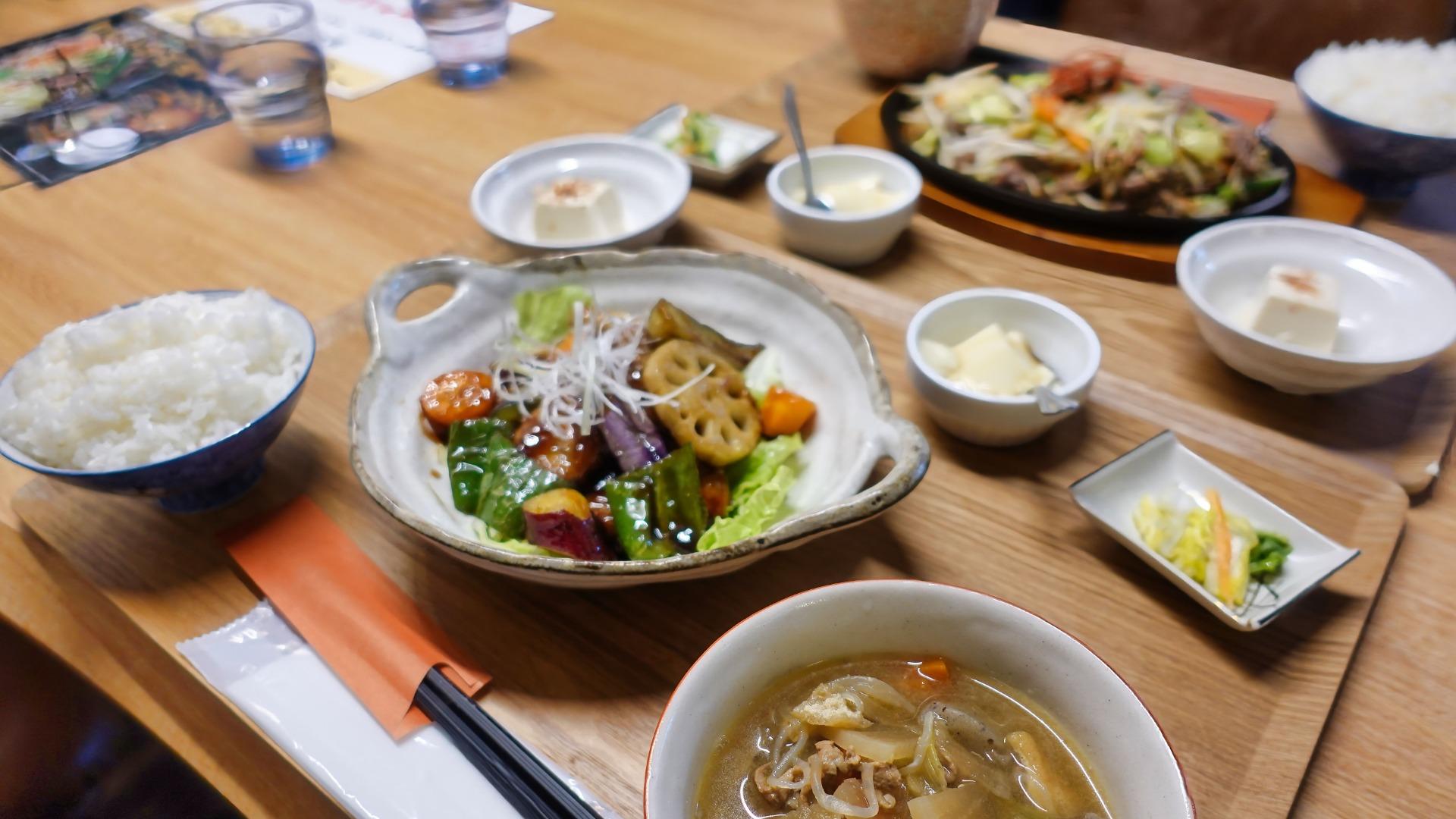 こちらの定食は豚汁がデフォルト。(豚汁でのお値段案内)見るからに野菜が美味しそう。豚唐揚げは、中にしっかり沢山入っています。酢豚を和洋にアレンジした料理という感じ。(食べるのに忙しくて写真がありません、豚唐揚げがよくわかる写真がぁ。ごめんなさい)