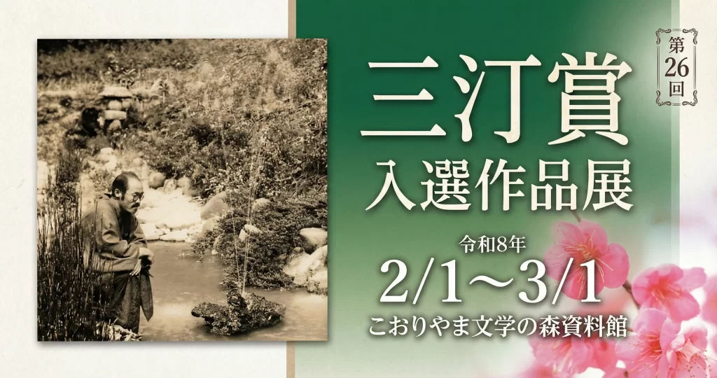 こおりやま文学の森資料館で開催される「第26回 三汀賞 入選作品展」の案内です。全国から寄せられた三汀賞俳句募集の入選作品を展示します。開館時間は10時から17時まで(最終入館は16時30分)。月曜日が休館日ですが、3月1日は無料開放されます。一般200... -
