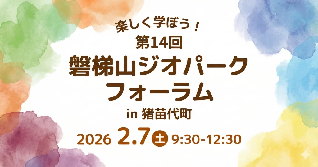 2026年2月7日(土)に猪苗代町体験交流館「学びいな」で開催される「第14回 磐梯山ジオパークフォーラム」のイベント情報です。参加費は無料。フォーラムでは、ジオパークの今や日本遺産に関するお話、磐梯山の自然をテーマにした体験コーナーが設けられます... -