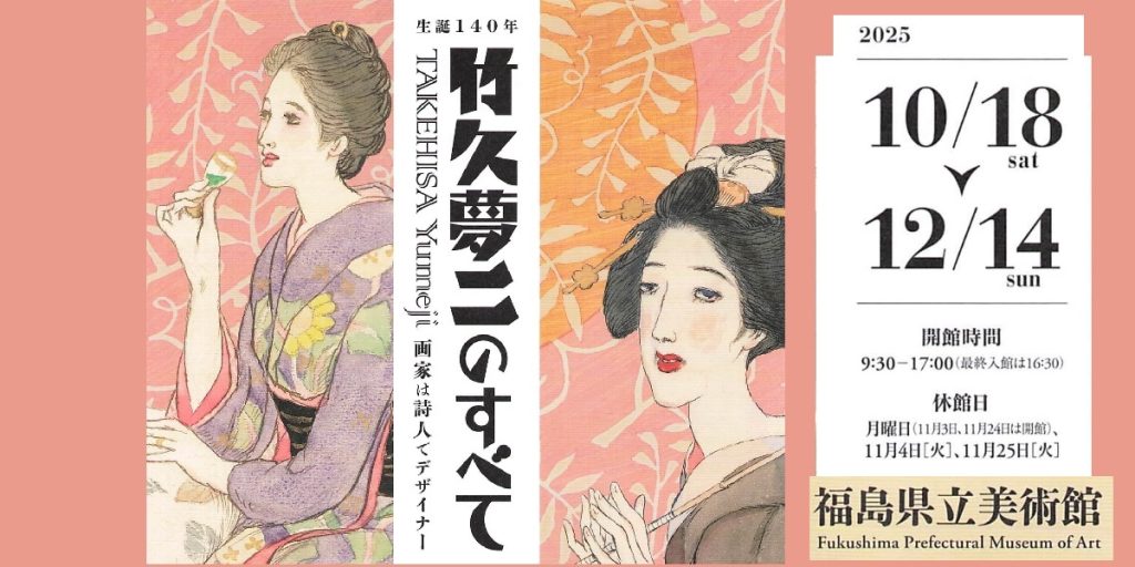 叙情的な美人画で知られる竹久夢二の生誕140年を記念した大規模展。詩情あふれる作品とともに、デザイン・挿絵・装丁など多彩な表現を紹介。時代を超えて愛される夢二の魅力を一望できる展覧会です。