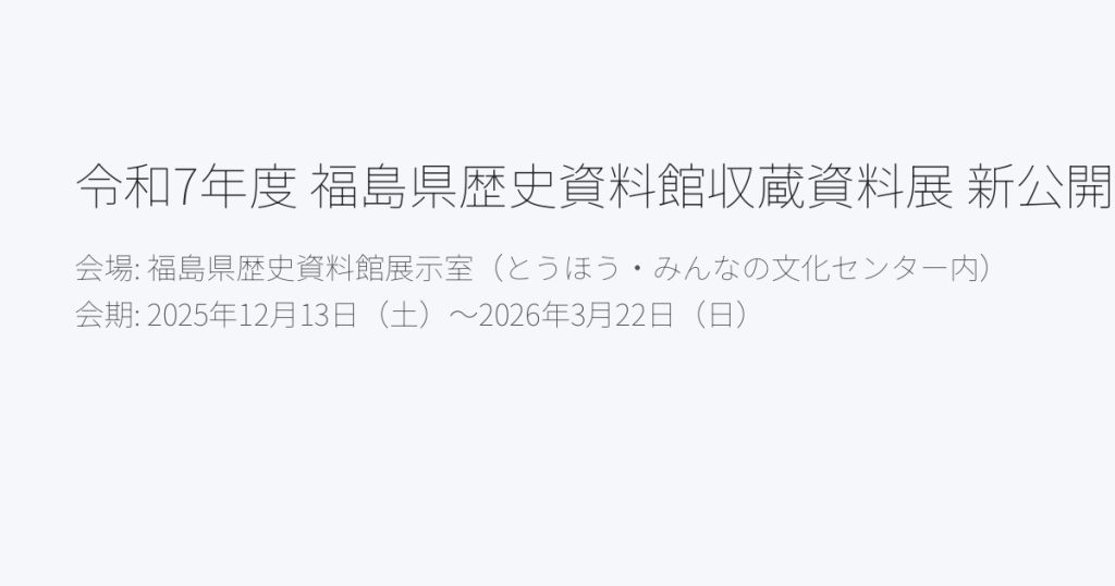 福島県歴史資料館にて令和7年度新公開史料展が開催される。江戸後期から明治前期にかけての貴重な文書を展示し、地域の歴史と文書の魅力を伝える。入館無料で2025年12月13日から2026年3月22日まで。併せて「旅する人、移動する人」というテーマのトピックス展も実施。