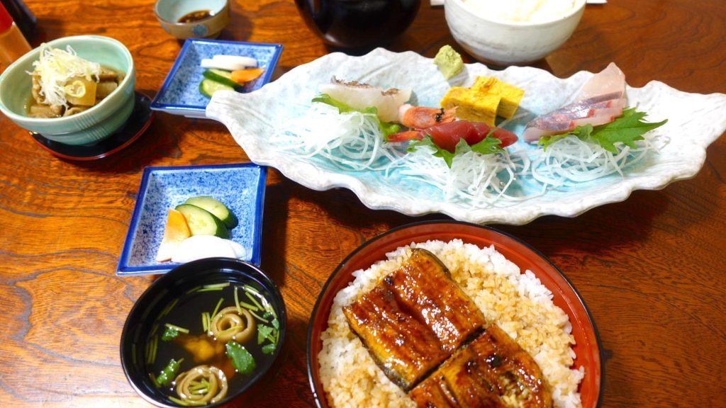 丑若丸 3点刺身 + 定食(ご飯セット)