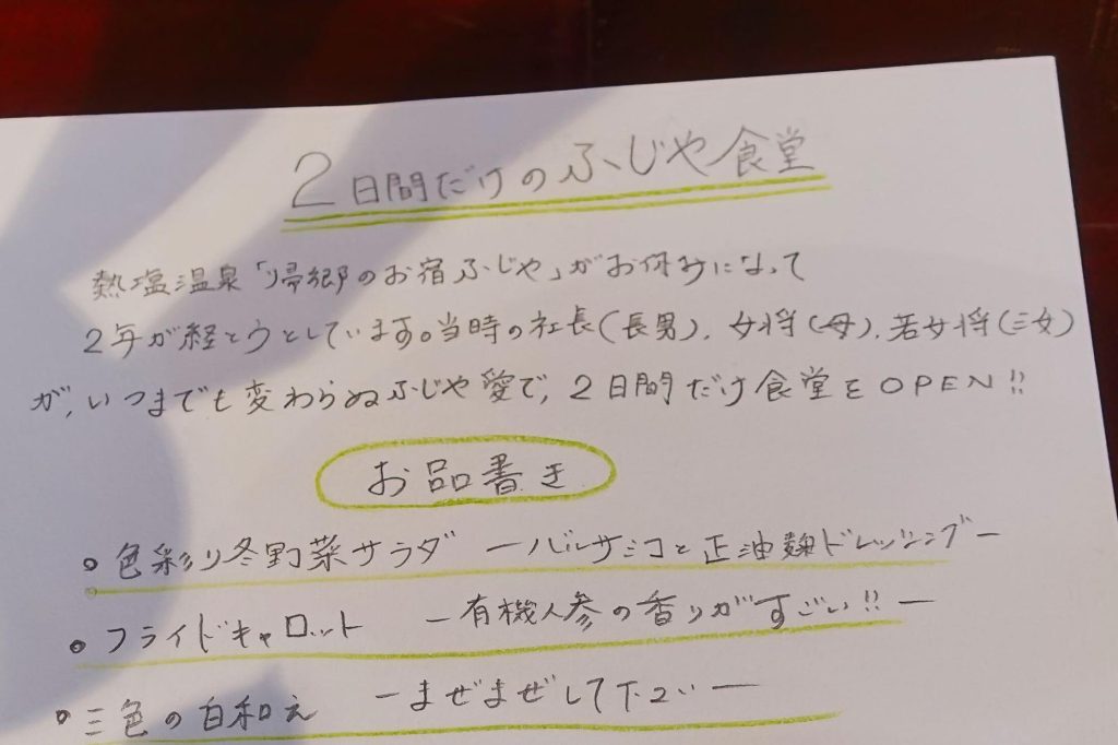 ヒューマンハブ天寧寺倉庫 2日間だけのふじや食堂 お品書き