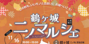 鶴ヶ城二ノ丸芝生広場で開催される秋のマルシェイベント。キ…